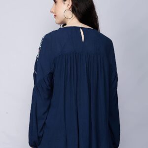 Home Womens Tops GLORYBOYZ Women’s Yoke Embroidered Serene Bohemian Style Elastic Cuff Soft Viscose Blouse Top
