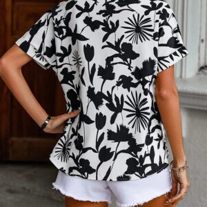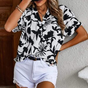 Home Womens Tops Greciilooks Women’s Casual Digital Printed Shirt Ruffle Sleeve Tops | Floral Printed Shaded Shirt for Women |Casual Short Sleeve Oversized Blouses Tops
