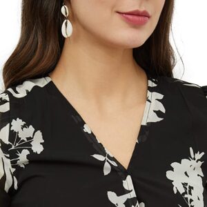 Red Printed Woven Dress, has a A-Line, V-Neck, Long Sleeves, and Knee Length