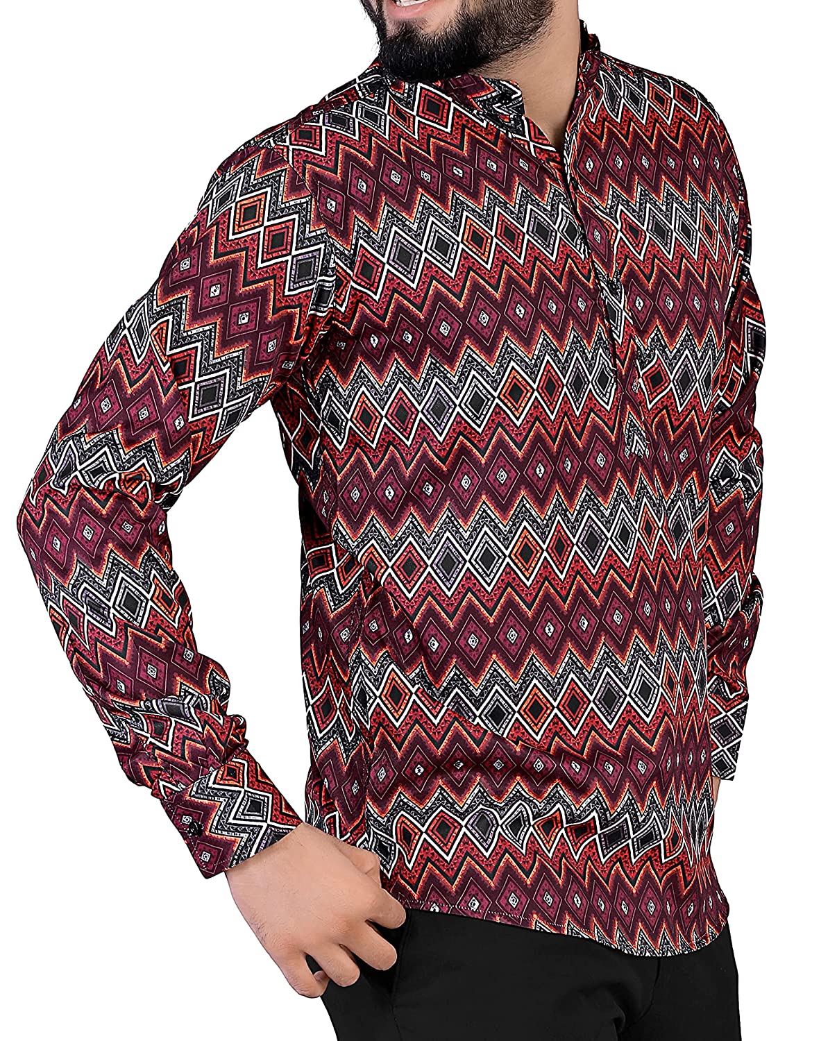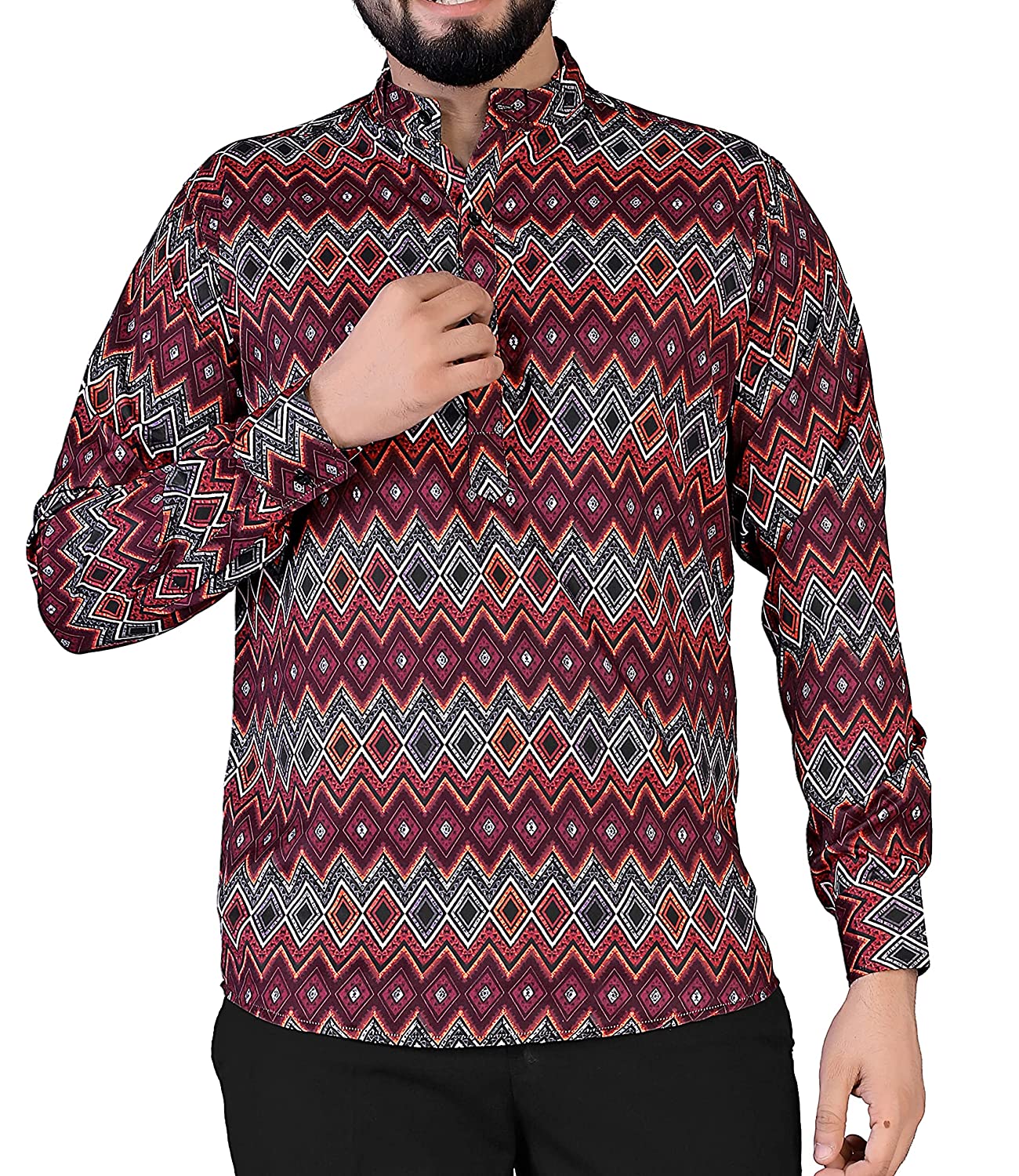 IndoPrimo Men’s Poly Cotton Casual Printed Kurta Shirt