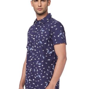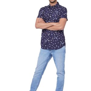 Jack & Jones Men 100%Cotton Slim Fit Printed Blue Shirt