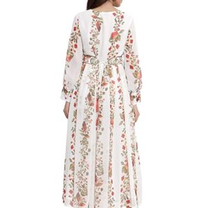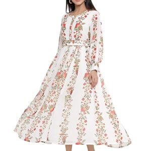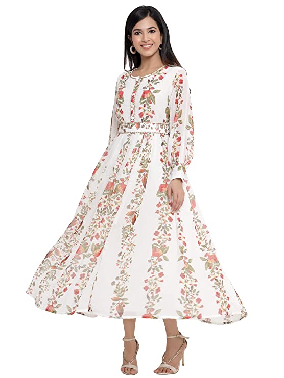 Juniper Offwhite Chiffon Printed Flared Dress with Waist Tie-up