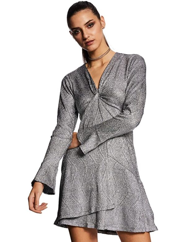 V Neck Full Sleeves Short Dress
