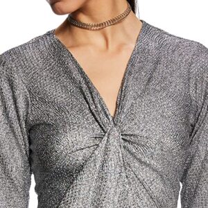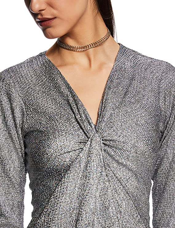 Miss Chase Women’s Black Designer Super Soft Round Neck Full Sleeves Mini Bodycon Dress with Sequin Strip on Sleeves