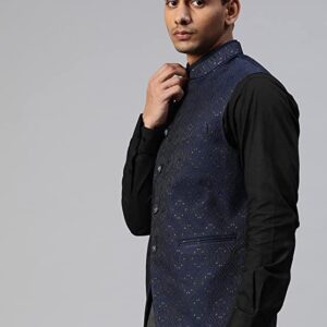 Tailored to perfection for the fashion-elite, this waistcoat from MANQ is crafted with Jacquard Silk which makes it a perfect party/festive wear. Featuring a round neck and a buttoned front, it displays 2 functional pockets on the exterior for utility. Fashioned in a slim fit for a comfortable and fitted feeling, this waistcoat can be paired with a shirt and trousers/denim.