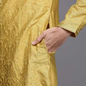 Impress everyone with your amazing fashion sense by donning this Kurta set for men. Tailored from finest fabric and fashioned with a chinese collar for a dash of style. It is a great addition to your wardrobe and will win you compliments from one and all Perfect for Gifting: Show the unmatched joy of your happiness to your loved ones by gifting this royal & elegant Kurta by Manyavar. Give your friend, brother, dad, or husband a charming feel with our imperial collection of readymade kurta set, kurta, and more. With many appealing colors and fabrics to choose from, your special one will surely outshine everyone else. In the fast-paced world, traditional Indian styles need to be flaunted with a twist. Manyavar brings to you its range of traditional and Indo-Western outfits, a perfect blend of royal and festive designs emulated into trendy traditional wear for you.