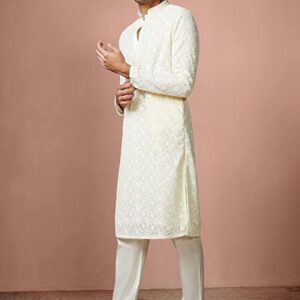 Home Mens Ethnic Manyavar Kurta Set for Men, Full Sleeves Mandarin Collar Ethnic Kurta Set for Engagement & Wedding, Party Georgette