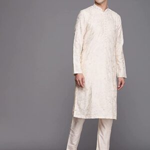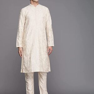 Home Mens Ethnic Manyavar Kurta Set for Men, Full Sleeves Mandarin Collar Ethnic Kurta Set for Engagement, Wedding, Party Printed (Off White)