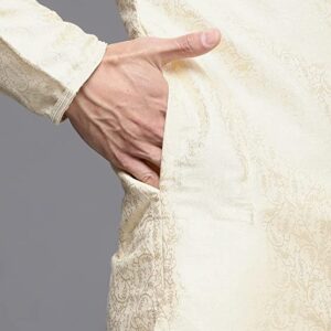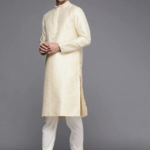 Home Mens Ethnic Manyavar Kurta Set for Men, Full Sleeves Mandarin Collar Ethnic Kurta Set for Engagement, Wedding, Party Solid (Beige)