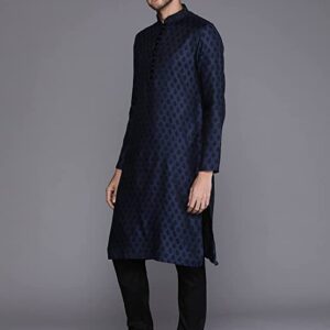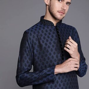Home Mens Ethnic Manyavar Kurta Set for Men, Full Sleeves Mandarin Collar Ethnic Kurta Set for Engagement, Wedding, Party Solid (Blue)