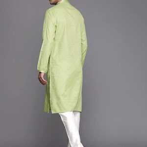 Home Mens Ethnic Manyavar Kurta Set for Men, Full Sleeves Mandarin Collar Ethnic Kurta Set for Engagement, Wedding, Party Solid (Green)