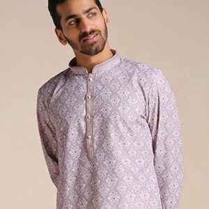 Home Mens Ethnic Manyavar Kurta Set for Men, Full Sleeves Mandarin Collar Ethnic Men’s Kurta Set for Engagement, Wedding, Party Blended Cotton Printed