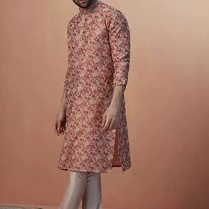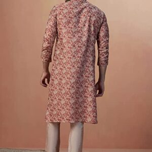 Home Mens Ethnic Manyavar Kurta Set for Men, Full Sleeves Mandarin Collar Ethnic Men’s Kurta Set for Engagement, Wedding, Party Blended Cotton Printed (Rust)