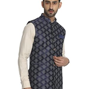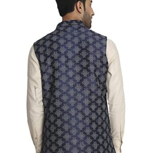 Manyavar Mens Jacket, Nehru Jacket for Men, Ethnic Jacket For Festival, Wedding, Party, Sleevless Jacket Blue