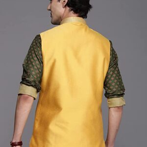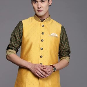 Manyavar Mens Jacket, Nehru Jacket for Men, Ethnic Jacket for Festival, Wedding, Party Sleevless Jacket (Mustard)