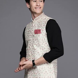 Home Mens Ethnic Manyavar Mens Jacket, Nehru Jacket For Men, Ethnic Jacket for Festival, Wedding, Party, Sleevless Jacket (Off White)