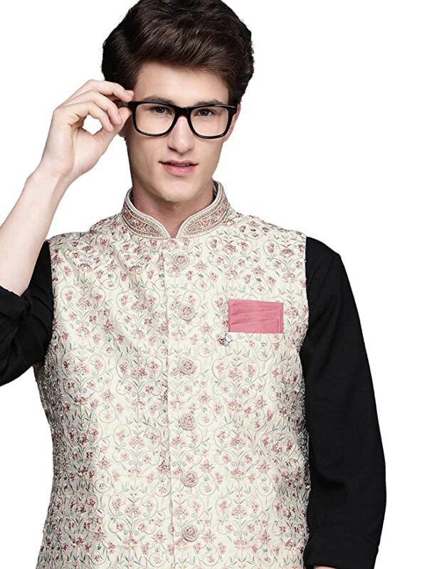 Home Mens Ethnic Manyavar Mens Jacket, Nehru Jacket For Men, Ethnic Jacket for Festival, Wedding, Party, Sleevless Jacket (Off White)