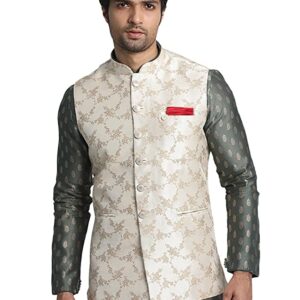 Manyavar Jacquard Print Stylish Nehru Jacket for Men