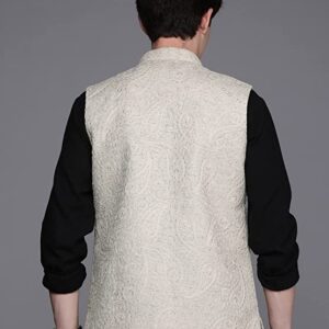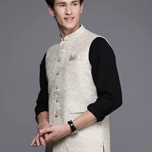Manyavar Men’s Nehru Jacket (JAC229-303_Biscuit_2XL)
