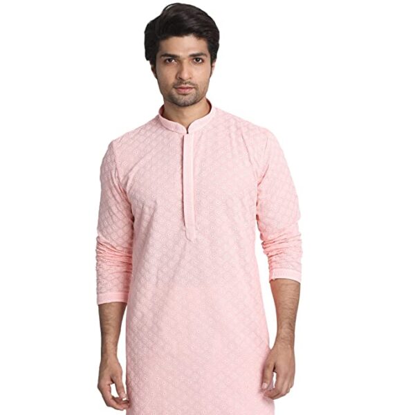 Home Mens Ethnic Manyavar SelfDesign Chikankari Knee Long Kurta and Churidar Set For Men