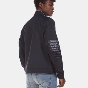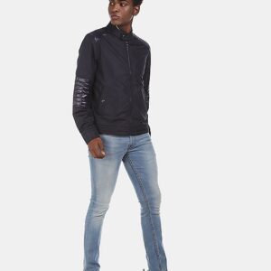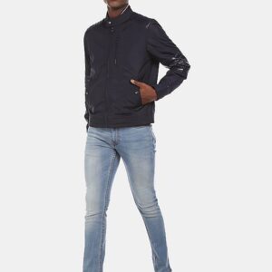 Home Mens Jackets Men Navy Stand Collar Café Racer Jacket