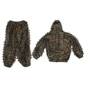 Provides for excellent concealment, designed to be worn over jeans and shirts, suitable for hunting or other forest activities