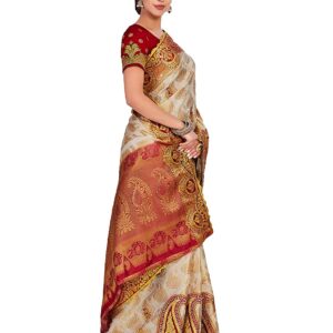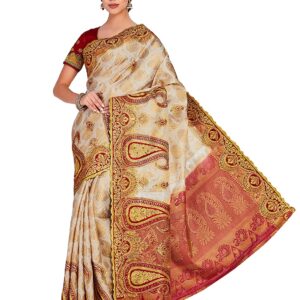Beige color Traditional Saree,With Hand Embroidery All Over,Has Hand Embroiderys at border and pallu,Comes WithMaroonColor: Contrast Unstiched Embrodered Blouse