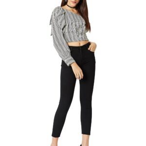 This floral bow detailing cuff sleeves one shoulder crop top, Is full sleeves and has a zip closure