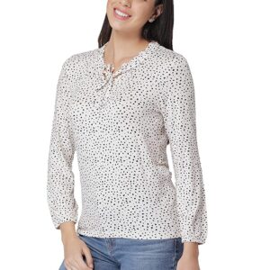 ManufacturerMIRZA INTERNATIONAL LTD, Show your quirky and elegant fashion taste with this White Printed colour with chest print top Mode by Red Tape. With the summer-friendly style of round neck and Full sleeves, its idea wins it a separate appeal. To get the best comfort, wear a cotton-made top in the summer. Features ·Colour: White ·Fit: Casual ·Fabric Type: Knit ·Sleeves: Full ·Occasion: Casual ·Neck: Round ·Fabric details: 96% VISCOSE 4% ELASTANE , AOP JERSEY , 160 GSM ·Wash care: Machine wash with similar colours ·Pattern: Printed ·Pocket: N/A
