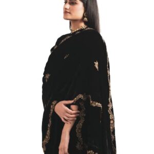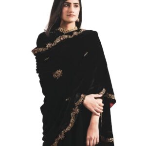 This is Neelu Sethi’s Designer Black dress . Its a suit set . Kurta of this dress is of pure silk velvet fabric with relaxed fitting and 3/4th sleeves. It has a zero neck and shantoon lining , the kurti is of calf length. It comes along with hand hand embroidery at the neck and sleeves. Topped with matching velvet odhni with beautiful embroidery at the borders and places. The dress is a set of 3 . Its a complete set , best suited for all weddings, family get togethers and festivals. Make your ceremonies, parties , festivals and all get togethers with your family more adorable with our ethnic yet so chic and stylish dresses.