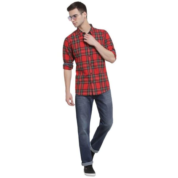 CAVALLO by Linen Club Red Checked Regular Fit Casual Shirt