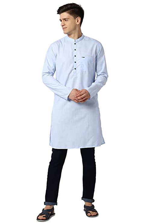 Peter England Solid Light Blue Kurta