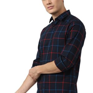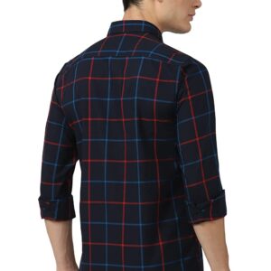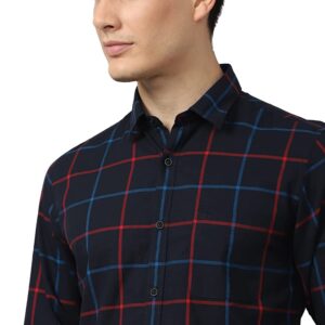 Crafted in 100% Cotton , this Navy Check Casual Full Sleeves shirt from Peter England Casuals features a Regular Collar and is tailored in Slim Fit.