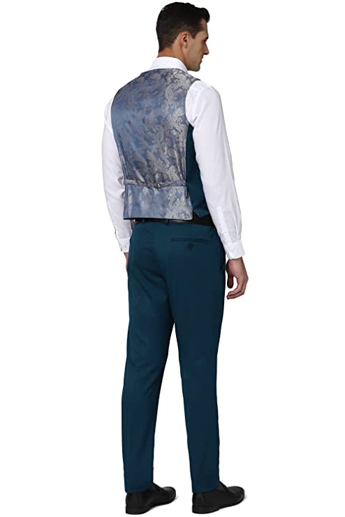 Peter England Polyester Blend Men Green Three Piece Suit Business Vest (PIS3SNSF907693 38)