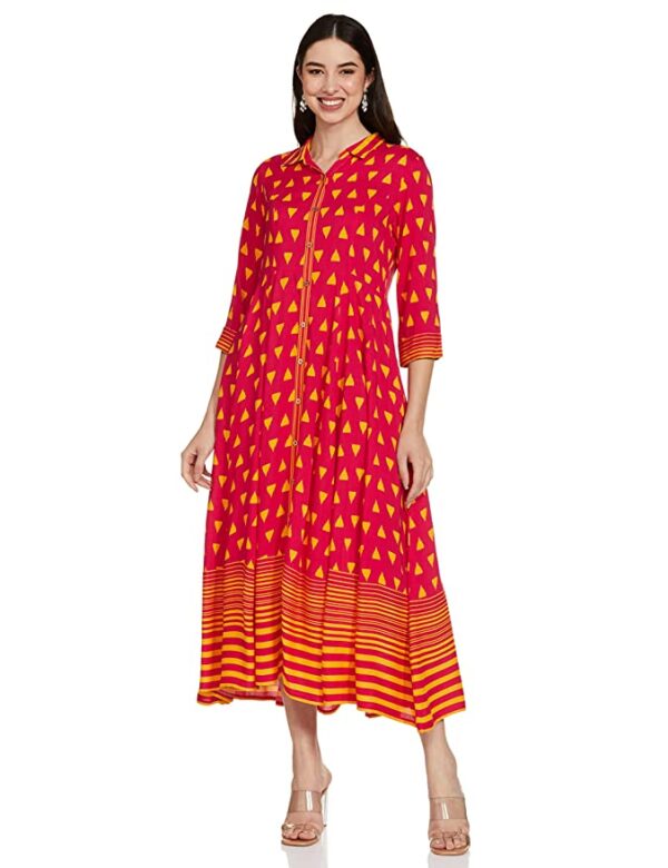 Home Womens Ethnic Rangriti Women’s Rayon Asymmetrical Knee-Length Casual Dress