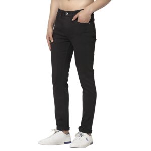 Reinvent your casual look with these trendy jet black jeans from RED TAPE. Crafted from 78% COTTON, 20% POLY, 2% SPANDEX in a skinny fit profile, these jeans optimize comfort all day. Featuring a mid-rise waist, these solid washed jeans are perfect for you. It has 2 scoop pockets, one coin pocket, two back pockets. Pair these solid jeans with a white T-shirt and loafers. Machine wash this with similar color.