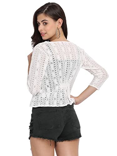 Home Womens Tops Rute Cotton White Shrug Short Sleeves for Women