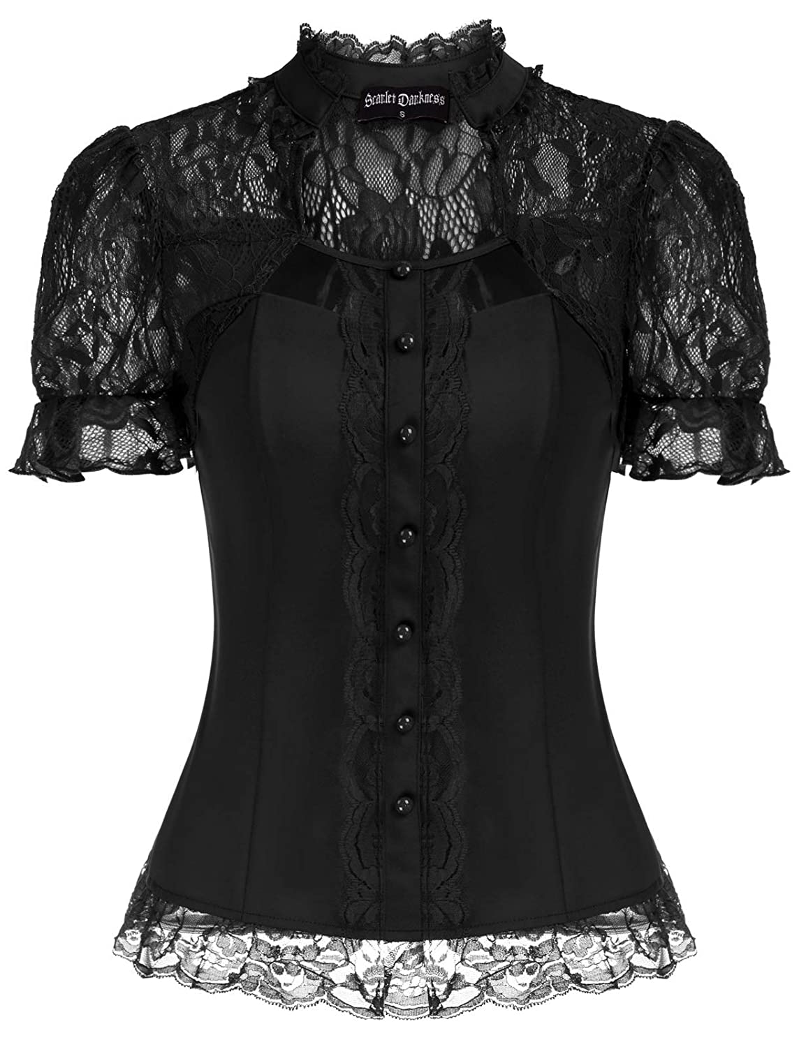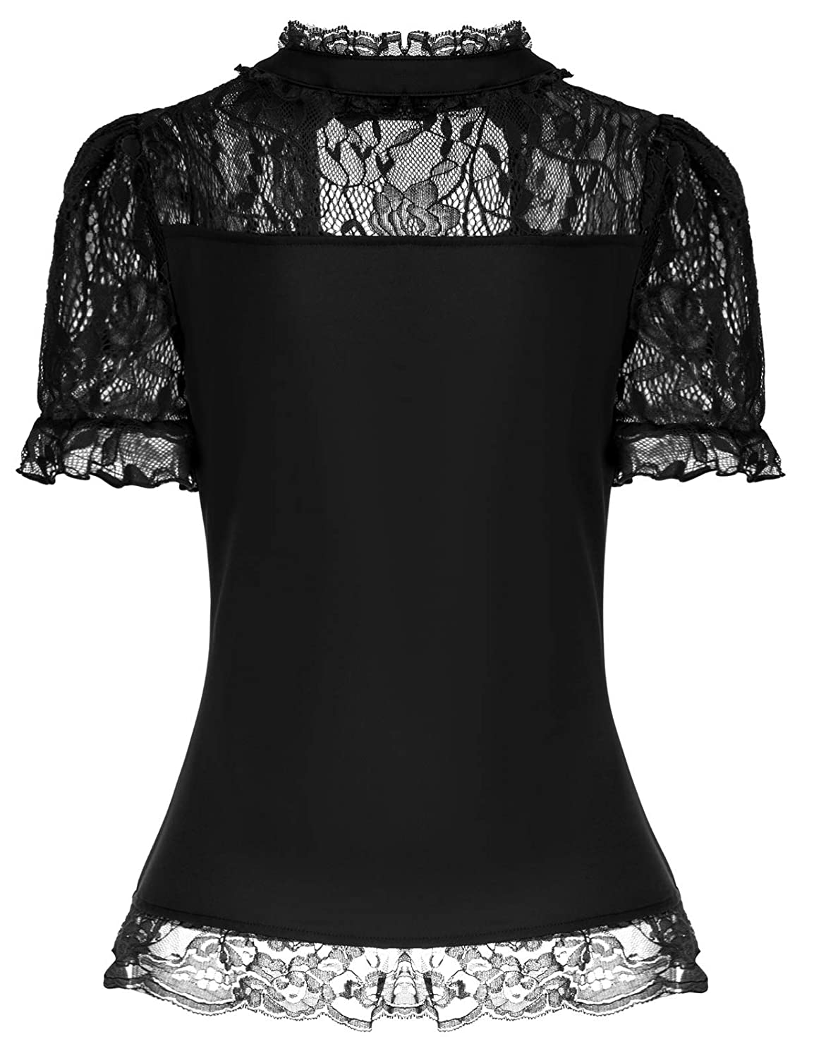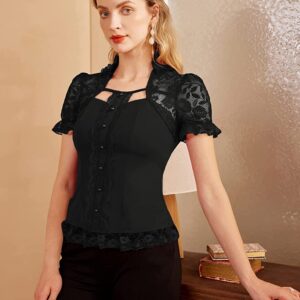 Women Victorian Short Lace Sleeve Vintage Button Down Blouse