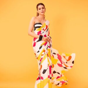 Sidhidata Women’s Digital Printed Georgette Saree With Unstitched Blouse Piece (Kriti Sanon White_Free Size)