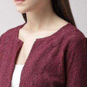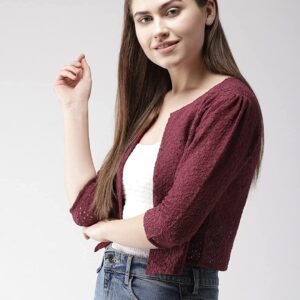 Off-white self design open front regular shrug, has three-quarter sleeves, straight hem size & fit.