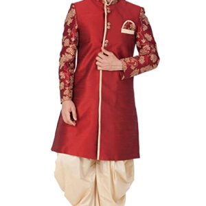Vastramay Men’s Maroon n Gold Cotton Silk Blend Sherwani Only Top