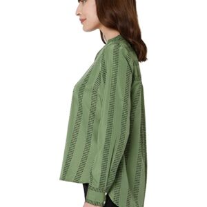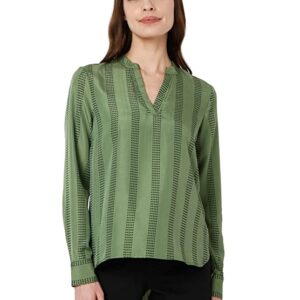 This top for women comes with madarin collar and V neckline and long sleeves is perfect for casual days. Style it with black jeans and sneakers.