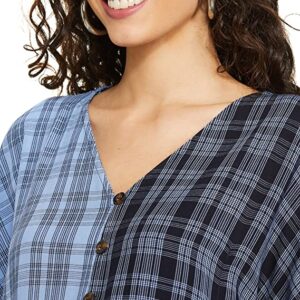 Vero Moda Women Checkered 100%Viscose Cap Sleeves Casual Grey Top
