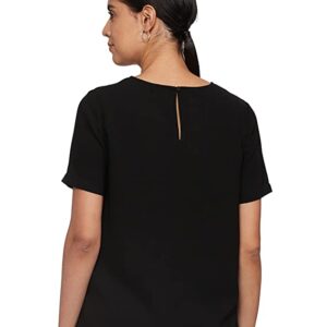 Vero Moda Women Black Embroidered Short Sleeve Round Neck Regular Fit Casual Top