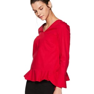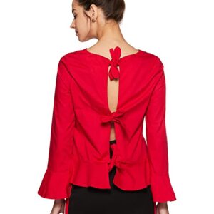Vero Moda Women Red Solid V-Neck Long Sleeves Regular Fit Cropped / Short Casual Wear Top
