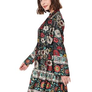 Vero Moda Women 100%Polyester Fit & Flare Printed Black Dress