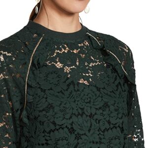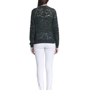 Vero Moda Women Green Lace Long Sleeve Band Collar Top