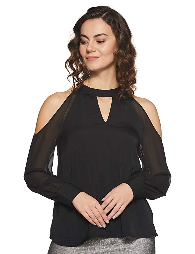 Vero Moda Women Black Solid Long Sleeve Round Neck Top