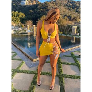 Yeshire Women’s Sexy Two Piece Outfit Clubwear Crop Top + Lace Up Skirt Club Party Bandage Dress